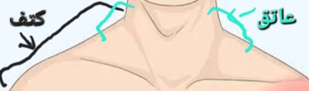 الشكل : يوضح الشكل العاتِقِ من جسم الإنسان، وهو منطقة التقاء الكَتِفُ بالعنق . |